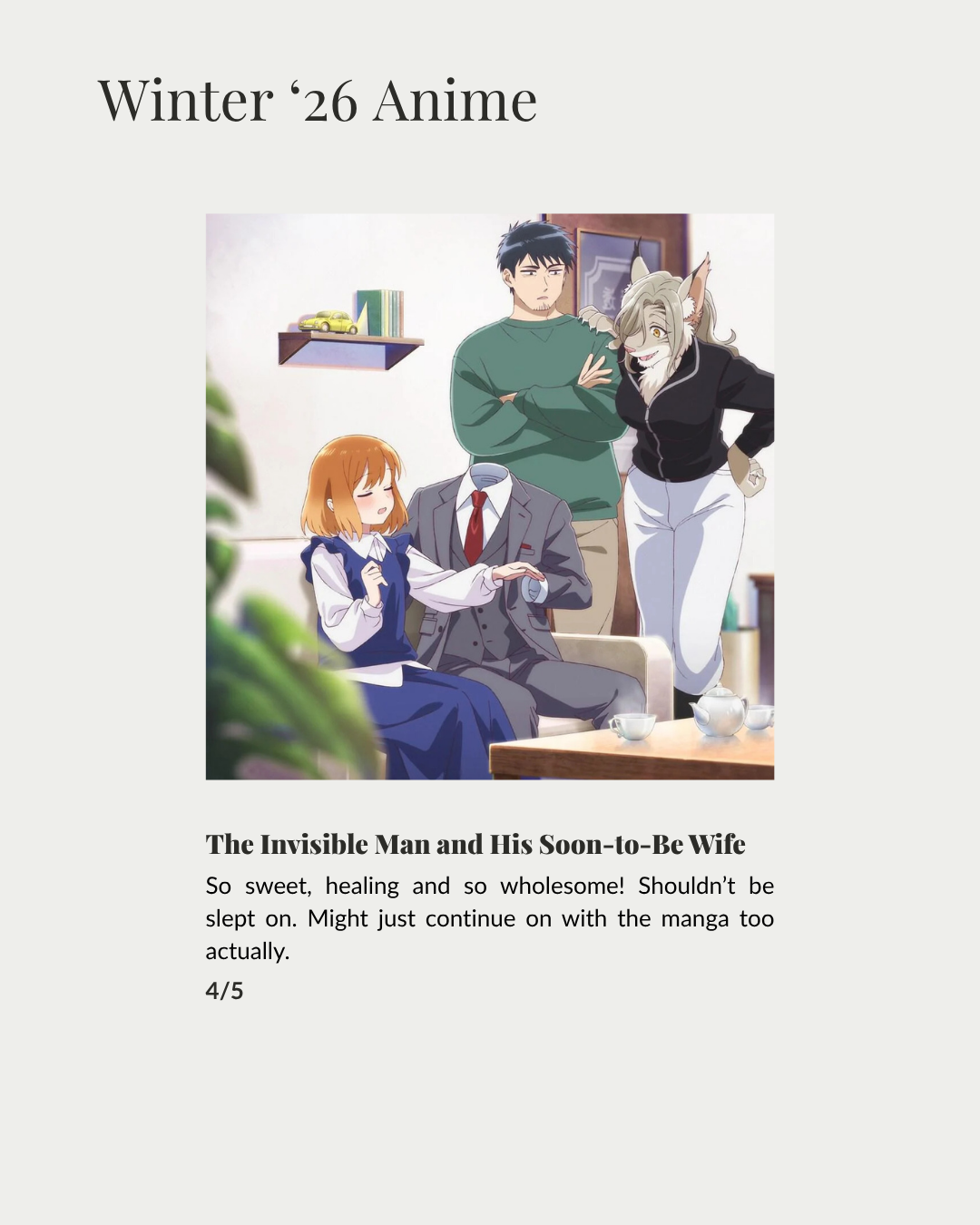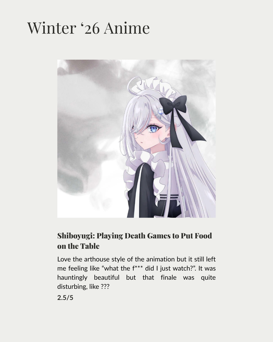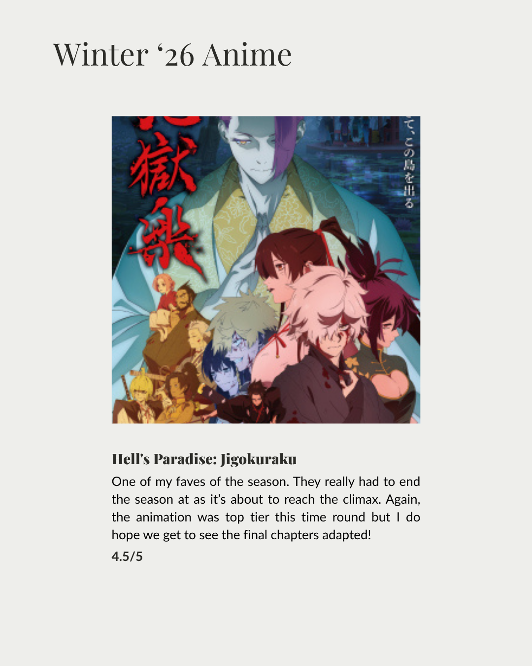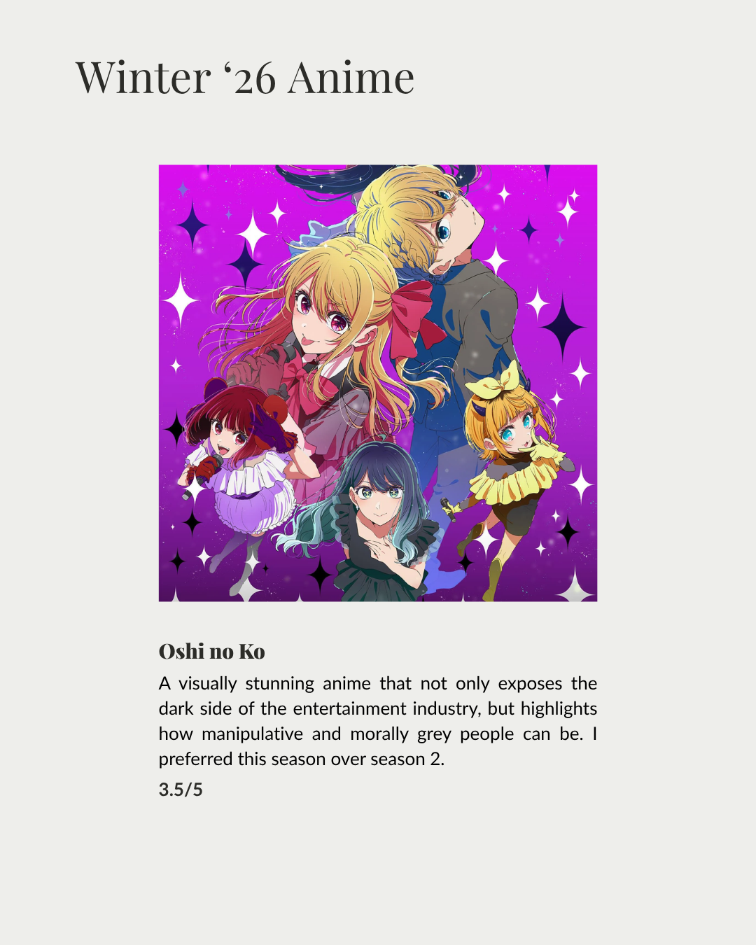 Hello, hi my lovelies! March’s media log won’t be as extensive as the previous month’s as I was so busy dealing with life. And, it was mostly spent on rounding up my winter ’26 anime as the season comes to an end, enjoy!