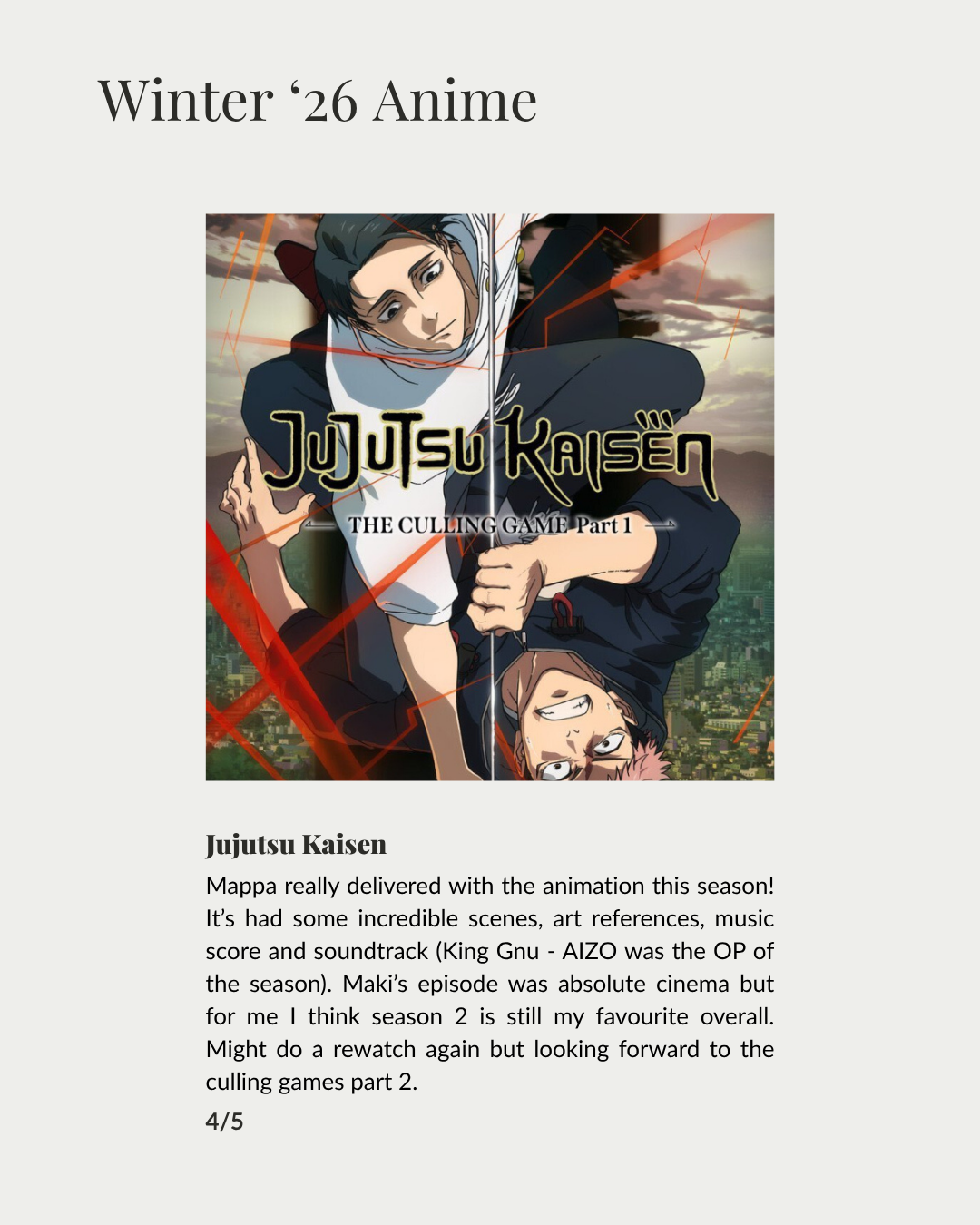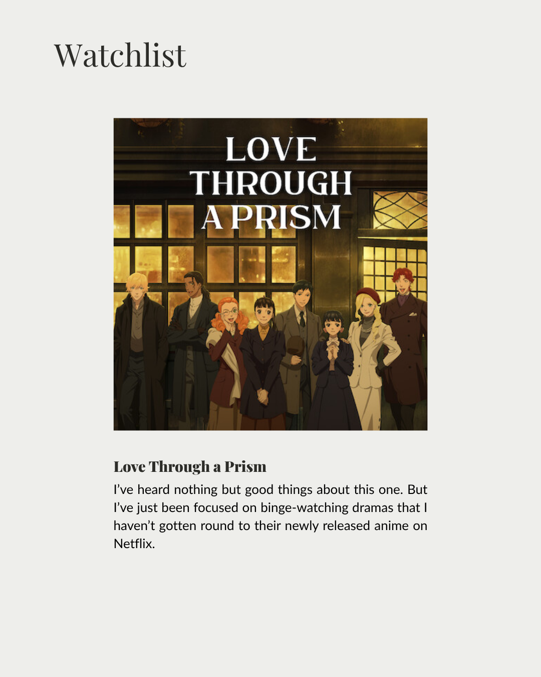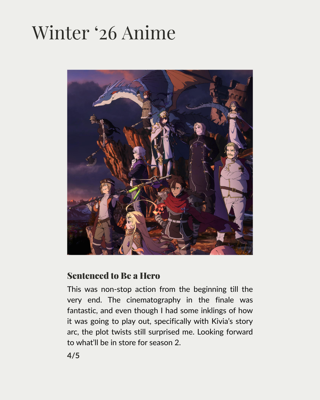 Anime Season Recap + Watchlist
